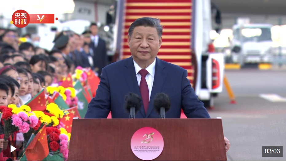 獨家視頻丨習近平抵達澳門 將出席慶祝澳門迴歸祖國25週年大會