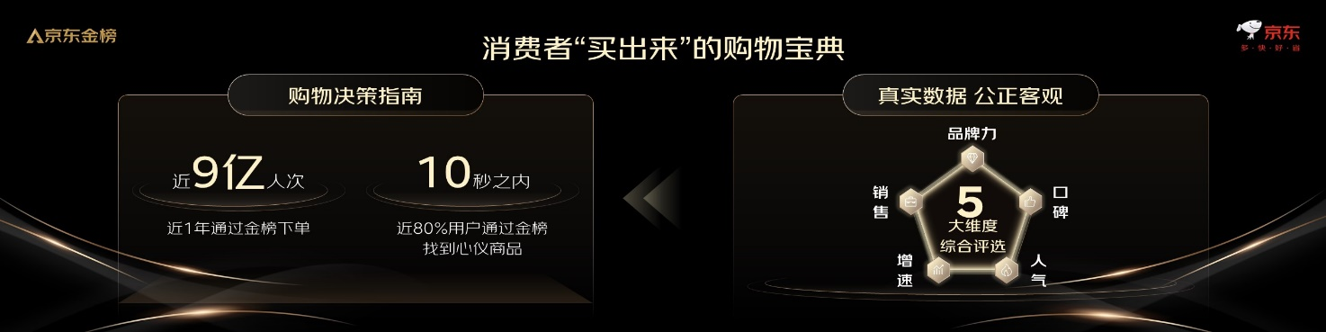 今年以來,有近9億人次通過金榜完成下單,近80%的消費者瀏覽京東金榜後,在不到10秒的時間就能找到心儀的商品。金榜持續受到眾多消費者信賴,其根源是因為評選機制的公正客觀。目前,商品的銷售、口碑、人氣、品牌力和增速是登上金榜的重要指標,這些指標綜合反映了廣大消費者的實際購買選擇、使用體驗和評價反饋,也正因如此,京東金榜才持續成為消費者購物決策的可靠指南。