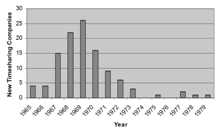 早在IT產業“史前”的1932年,藍色巨人IBM就成立了服務局部門(SBD),在美國各大城市自建制表機“機房”,通過人力配送“互聯網”傳輸打孔卡“數據”,為輻射範圍內的中小企業提供算力服務,使其無需承擔昂貴的硬件購置或租賃費用。儘管SBD營收從未超出過5%的貢獻度,但這種伴隨着一整代美國“新市民”與“新白領”共同成長起來的水平分工與服務付費生態,最終嵌入了美式管理資本主義的“基因編碼”,從而在電子計算機時代也依然順暢運轉。以Tymshare公司為代表的多用户遠程終端分時服務,同樣曾在微型計算機問世前興盛一時。