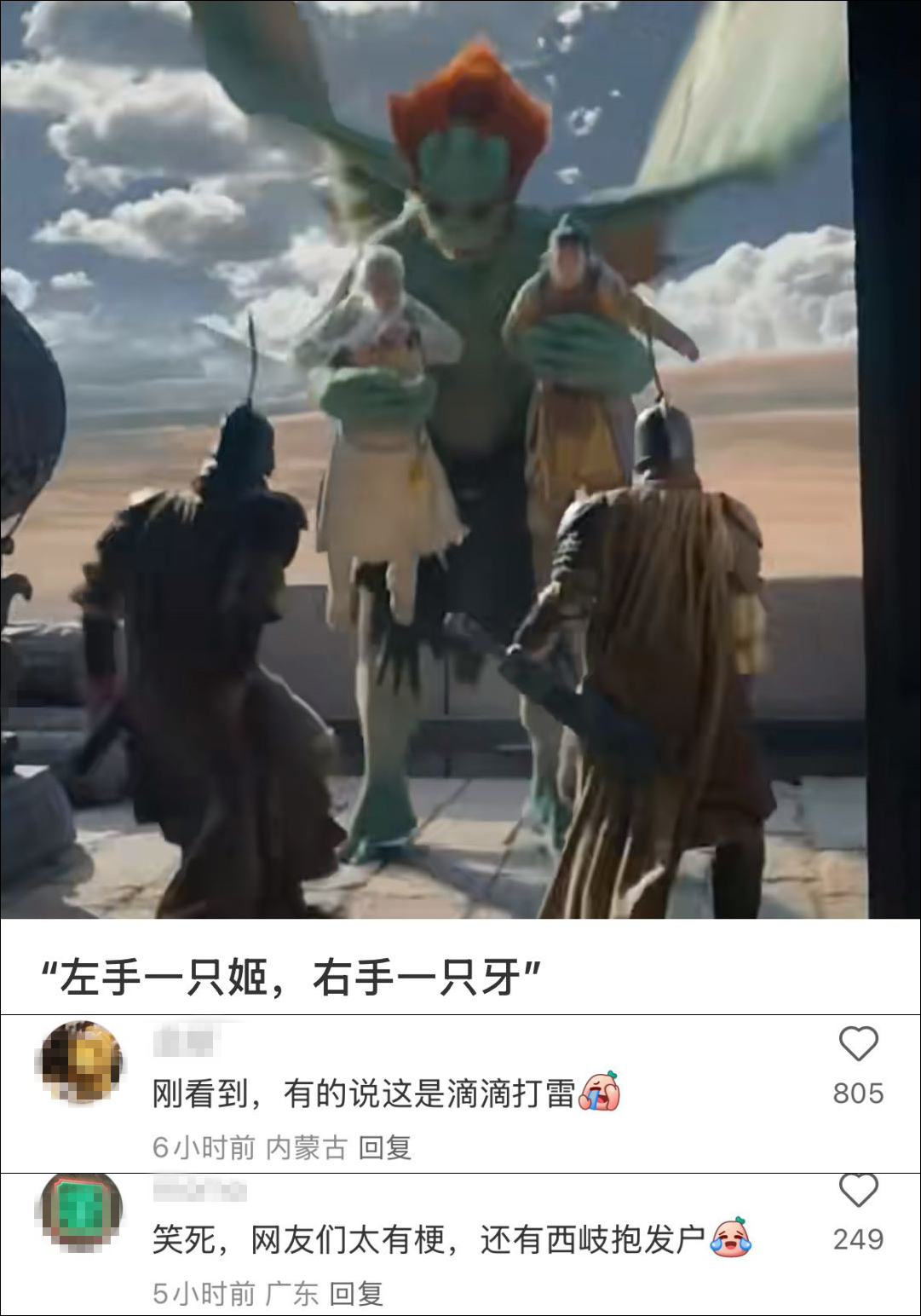 抓着姜子牙和姬發的雷震子:左手一隻姬,右手一隻牙。