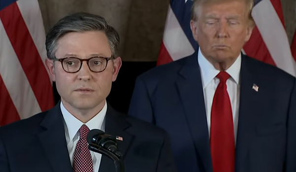 美國當選總統特朗普(右)和眾議院議長邁克·約翰遜(左) 視頻截圖