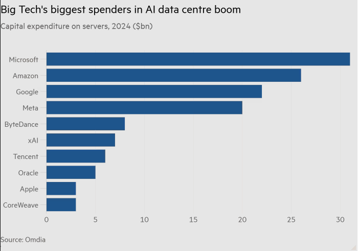這兩年來,科技巨頭已經在數據中心上投入了數百億美元用於運行英偉達的最新芯片。自微軟投資130億美元(約合人民幣949億)的OpenAI推出ChatGPT以來,各個科技巨頭包括並不限於谷歌、Anthropic、xAI、字節、騰訊等,都在投資以爭奪下一代人工智能的主導地位。