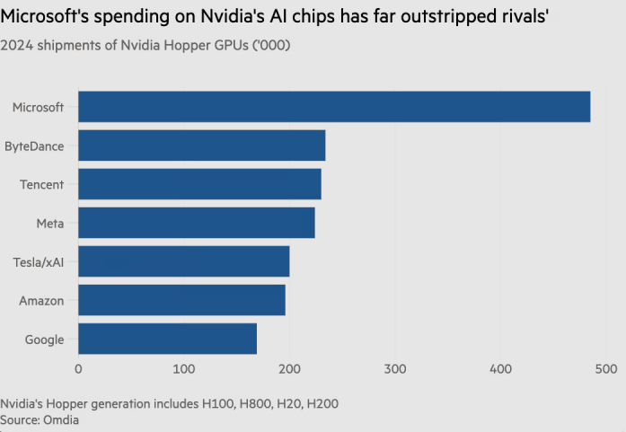 2024年,微軟對英偉達芯片訂單數量是其在2023年的三倍多,儘管當時英偉達已經為了應對ChatGPT的爆紅在加緊生產“Hopper”芯片。