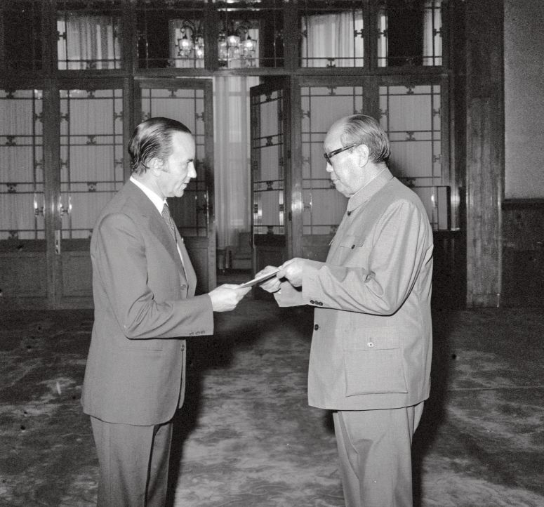 1979年2月8日,中華人民共和國與葡萄牙共和國正式建立外交關係。圖為葡萄牙首任駐中國特命全權大使安東尼奧·雷薩諾·加西亞向全國人大常委會副委員長烏蘭夫遞交國書國家人文歷史