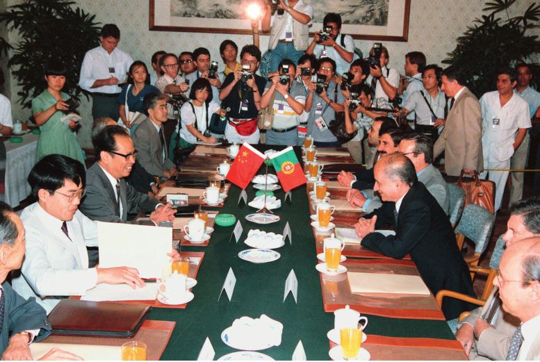1984年7月前後,中英“聯合聲明”即將達成,兩國之間的外交談判進入尾聲,香港前途也將塵埃落定。在此背景下,中葡兩國政府關於澳門前途問題的公開表態也日漸頻繁而具體。無論是兩國政府層面還是社會層面,都早已十分清楚香港問題的解決進程和方式勢必對澳門問題產生預示性的直接影響,而葡方對將澳門問題與香港問題視同一類的各種觀點一向懷有強烈牴觸心理。