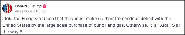 特朗普告知歐盟:必須大量購買美國油氣,否則就是關税