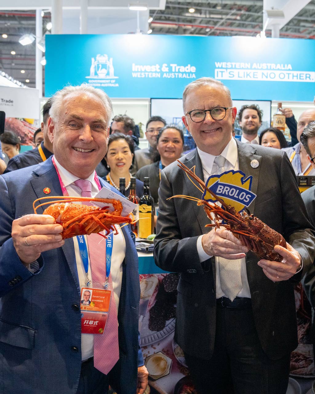 2023年上海進博會上,阿爾巴尼斯(右)和法雷爾(左)手持龍蝦合影 阿爾巴尼斯X賬號