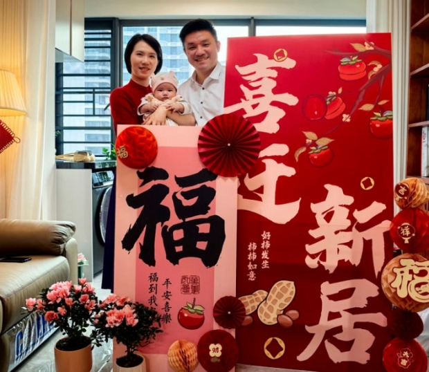 澳門創業青年黃滋才(右)和家人在“澳門新街坊”的家裏合影(2024年12月6日攝)。新華社發
