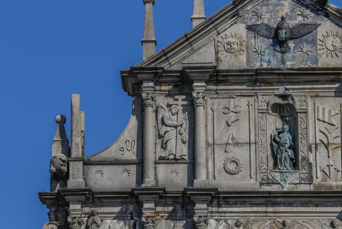 澳門大三巴牌坊是混合東方風格的巴洛克式建築。圖為大三巴局部 澳門旅遊局網站