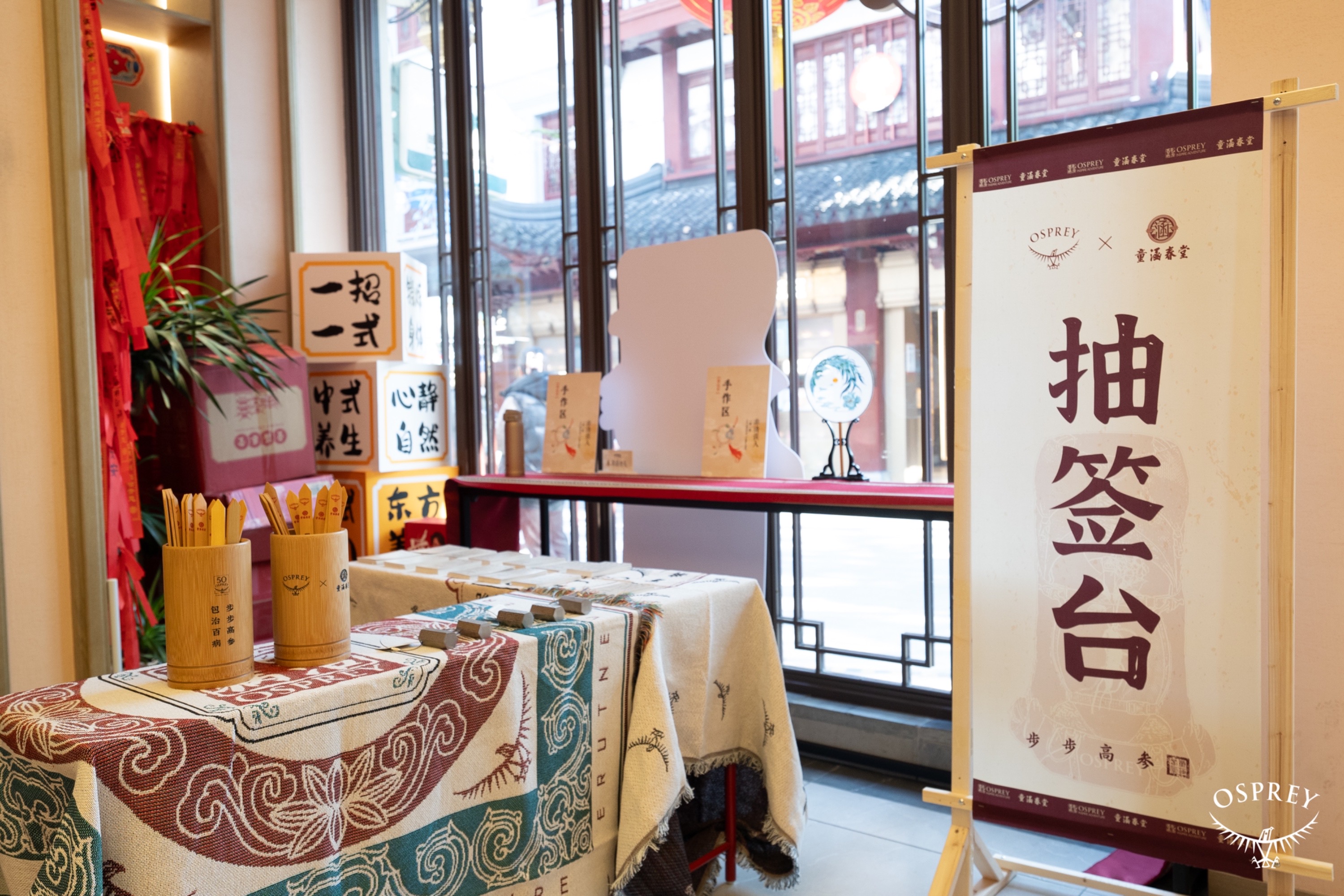 作為OSPREY 50週年系列活動的第三站,上海站延續了「包」治百病的主題,將品牌文化與傳統中醫藥文化相結合,本次活動線下落地於上海文化之根的大豫園片區,江南的歷史底藴和現代的繁華都市文化,於此交融。具體選址在始創於1783年的童涵春堂,期望通過此次跨界合作活動,讓更多⼈瞭解雙⽅品牌主張,外養內調,親近⾃然,釋放出累積的壓⼒,體驗到⼼靈深處的平靜與喜悦。重新找回⽣活的美好,身⼼康健、步步⾼升。