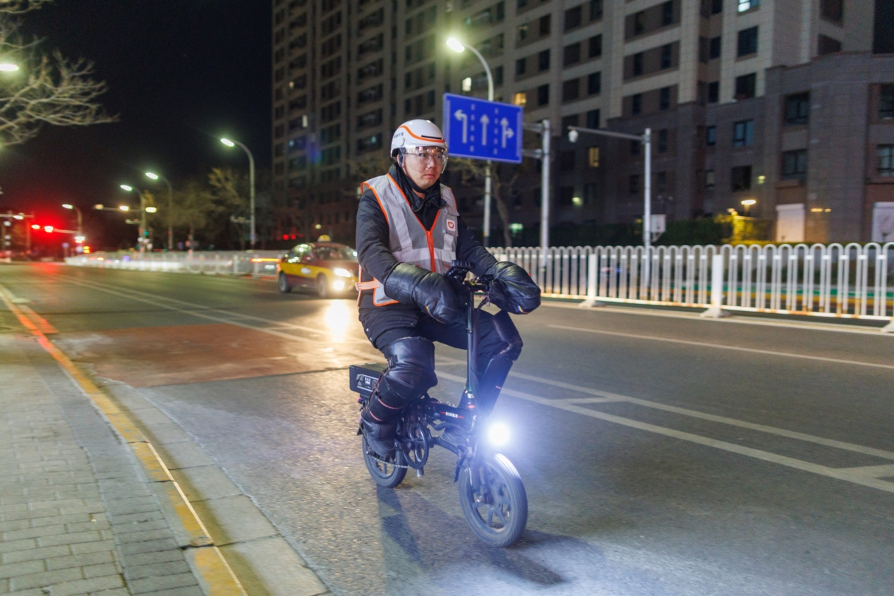 保障司機冬夜騎行安全 升級頭盔和馬甲雙重防護