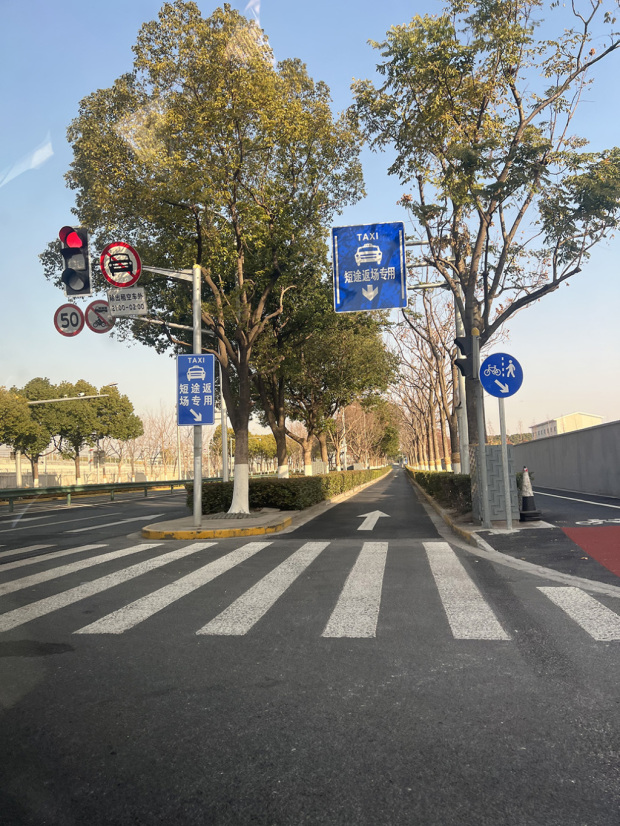 12月31日9點左右,澎湃新聞記者來到虹橋機場T2航站樓出租車蓄車場附近,見到了這條備受期待的“短途返場專用通道”。目前,短途運營模式正處於試運營階段。