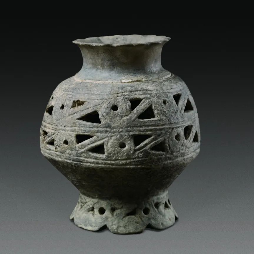 雙層鏤孔花瓣足陶壺