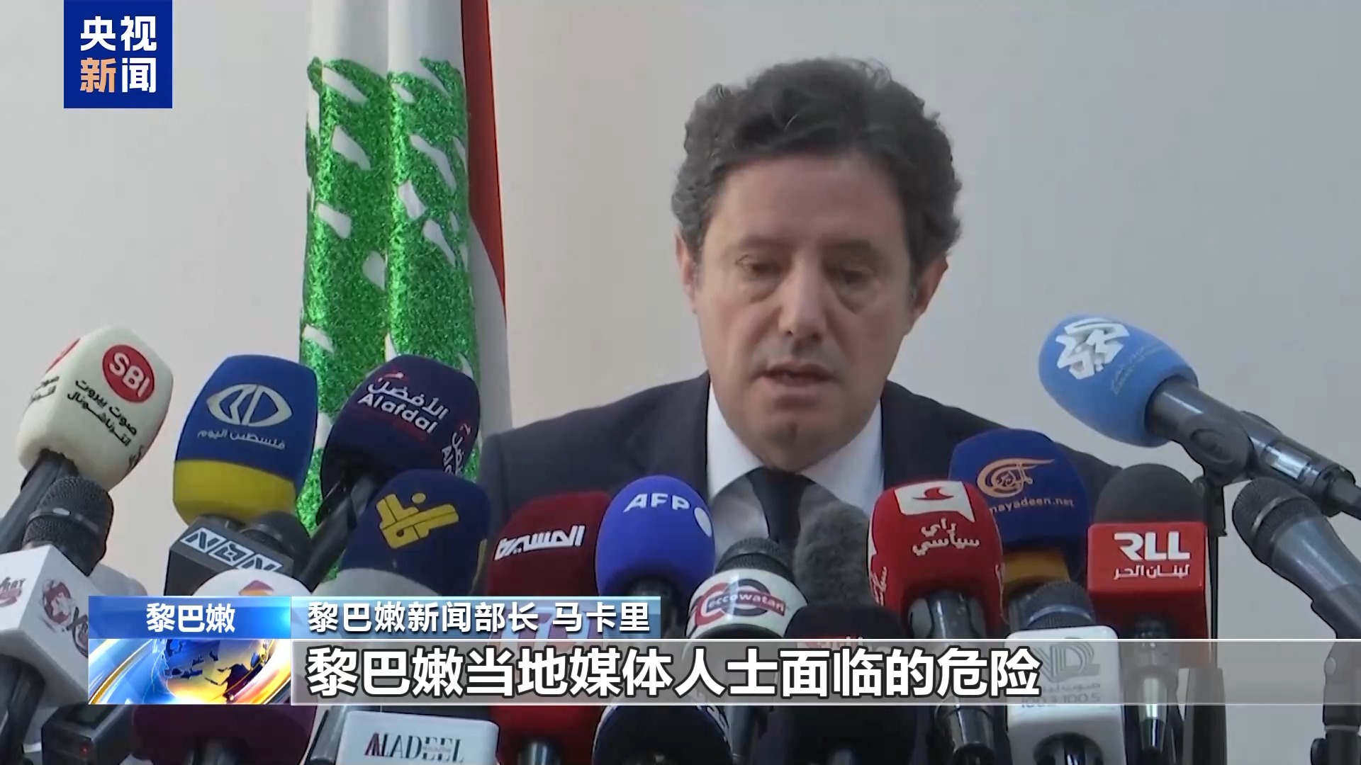 *黎巴嫩新聞部長 馬卡里:*黎巴嫩當地媒體人士面臨的危險,也會影響在黎巴嫩的外國記者,這都是由於以色列的緣故。我可以告訴你,截至10月9日,我們這裏有1638名外國記者,這不是一個小數字。在這場戰爭中,停止這種殺戮和阻止殺戮機器是我們共同的責任。