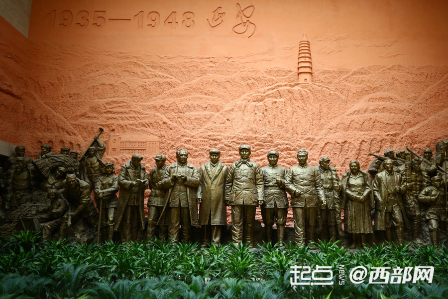 延安革命紀念館大廳巨型青銅羣雕《在陝北紅色歲月裏》