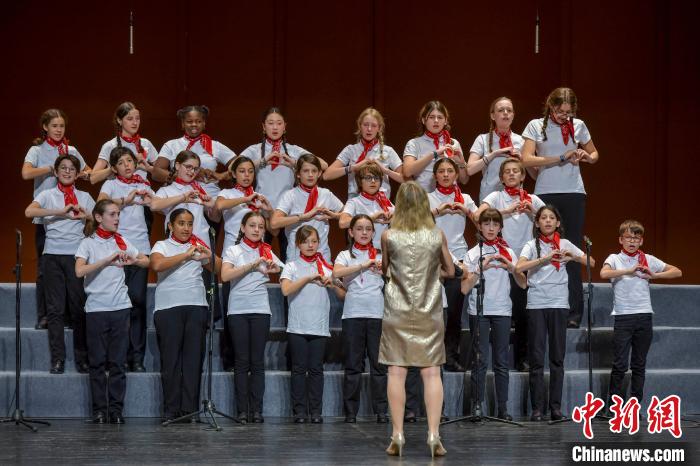 10月25日晚,2024年海南省五指山市“中法童聲合唱友誼之橋”音樂會在位於海口市的海南省歌舞劇院舉行,法國巴黎寶麗聲童聲合唱團演唱歌曲《如果我去中國》。 中新社記者 駱雲飛 攝