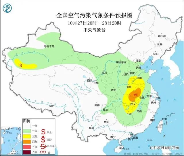 據中央氣象台最新預報,*10月27日夜間至29日,*湖北中部、湖南北部等地受華北、黃淮霾天氣傳輸影響,有霾天氣過程。