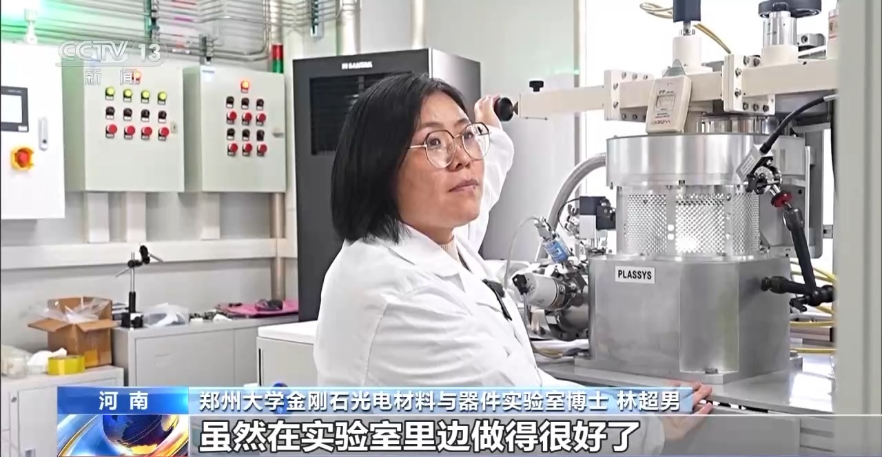 *鄭州大學金剛石光電材料與器件實驗室博士 林超男:*雖然在實驗室裏邊做得很好了,但是1台設備跟100台設備來對比,確實差別還是很大的。有很多實驗室沒有遇到過的問題,一步一步去克服這些困難。