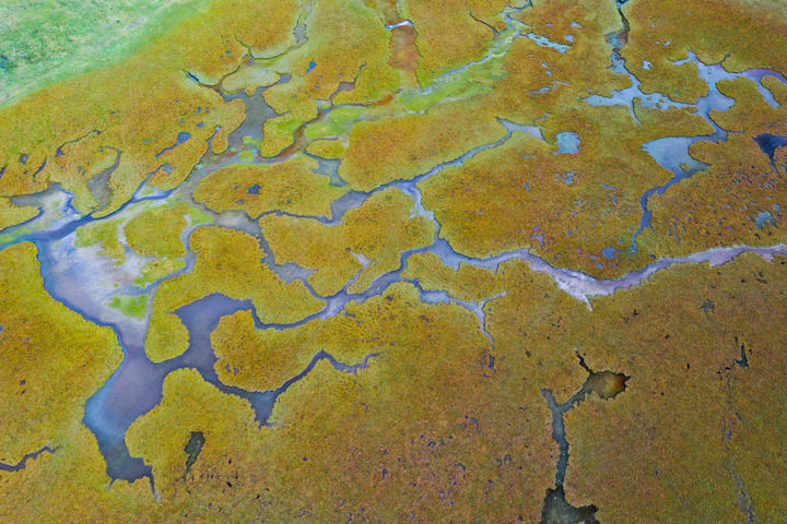 目光移至青藏高原東北部,蜿蜒的黃河靜靜流過若爾蓋草原。由於黃河改道及凍土退化等原因,當地黃河沿線草原曾一度面臨生態危機。