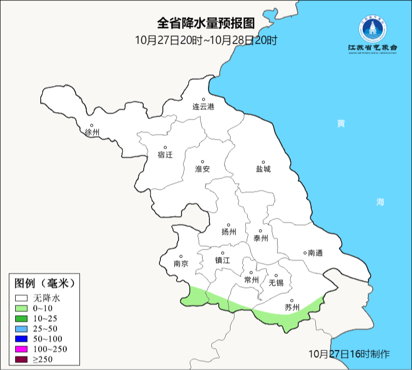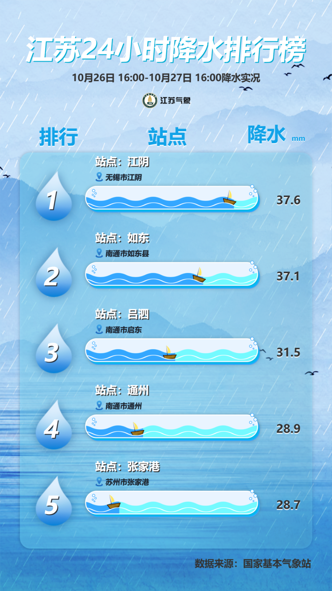 昨天白天,江蘇大部分地區出現降雨,其中沿江和蘇南地區出現中雨,局部地區大雨。