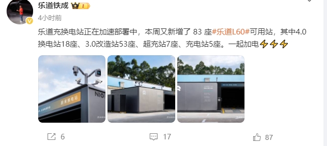 樂道汽車加速充換電站部署,新增83站助力“千站計劃”