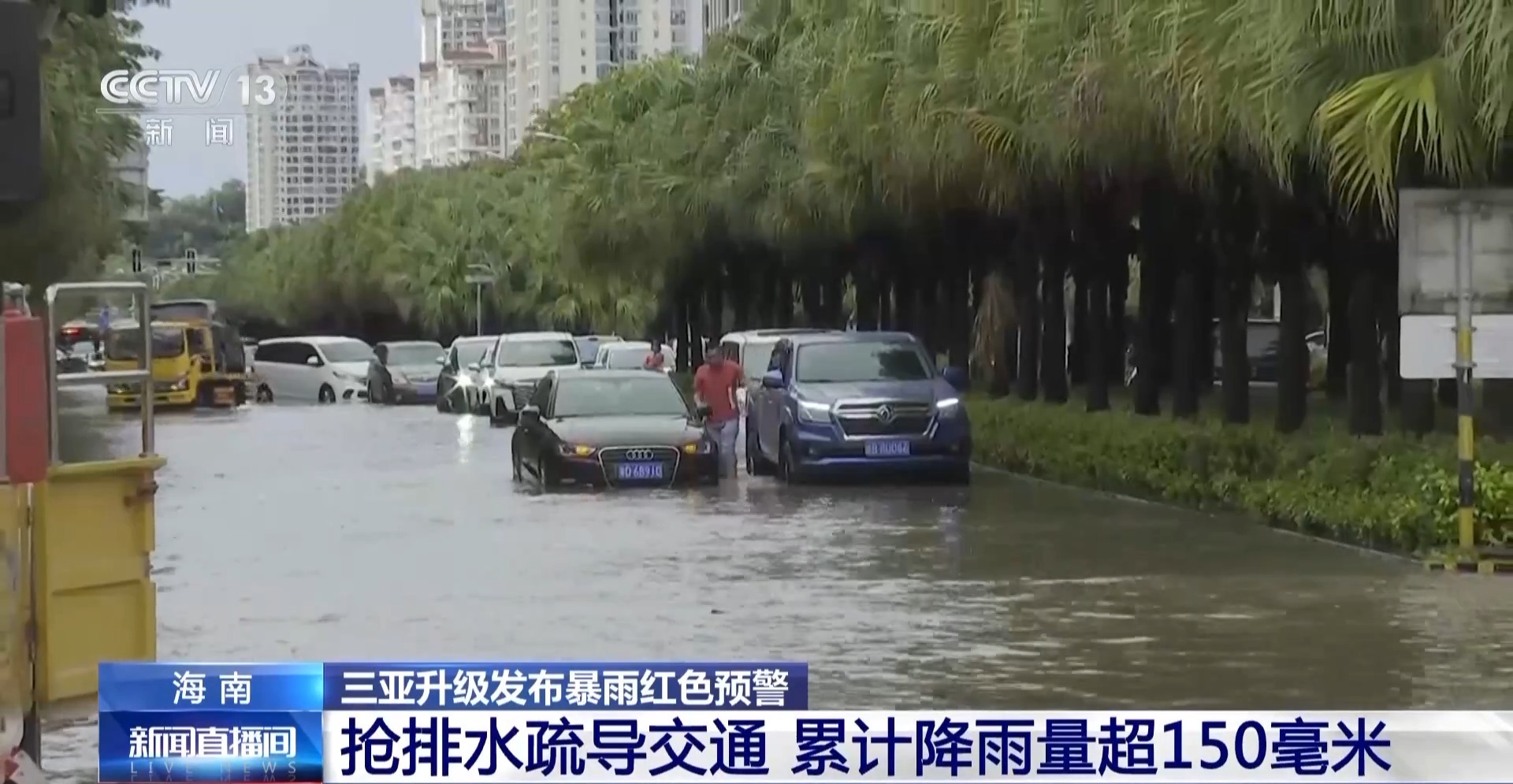 持續強降雨致三亞城區多條道路積水嚴重 部分景區暫停營業