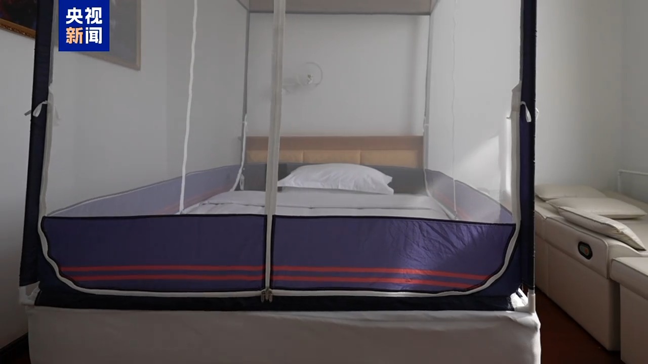 這裏三室一廳的佈局温馨舒適。如果乘組裏全是男航天員的話,他們三人就會住同一個套房。如果乘組裏有女航天員,男女航天員就會分住兩套房間。房間的陳設佈局和北京航天員中心公寓是完全一樣的。