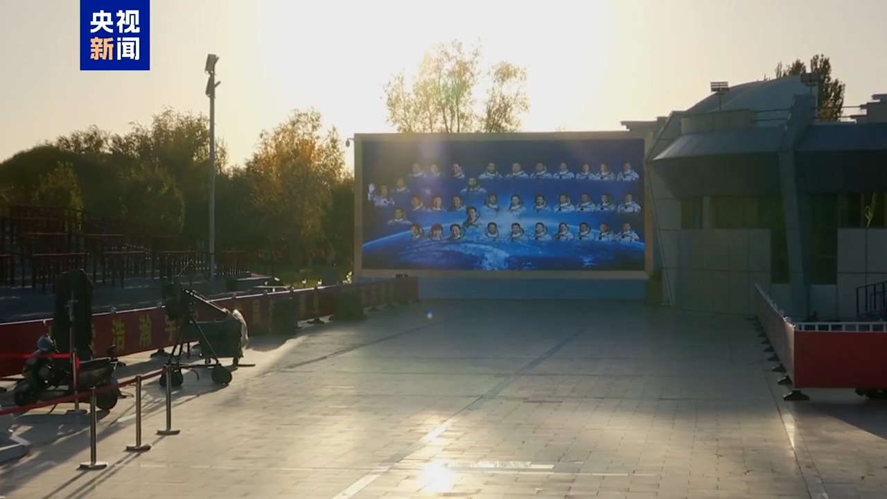 出征大廳外,是神五到神十八乘組的航天員照片牆,每一張背後都是滿滿的故事。比如,神舟六號乘組當時出征的儀式現場,能看到當他們站在這個廣場的時候還風雪交加。
