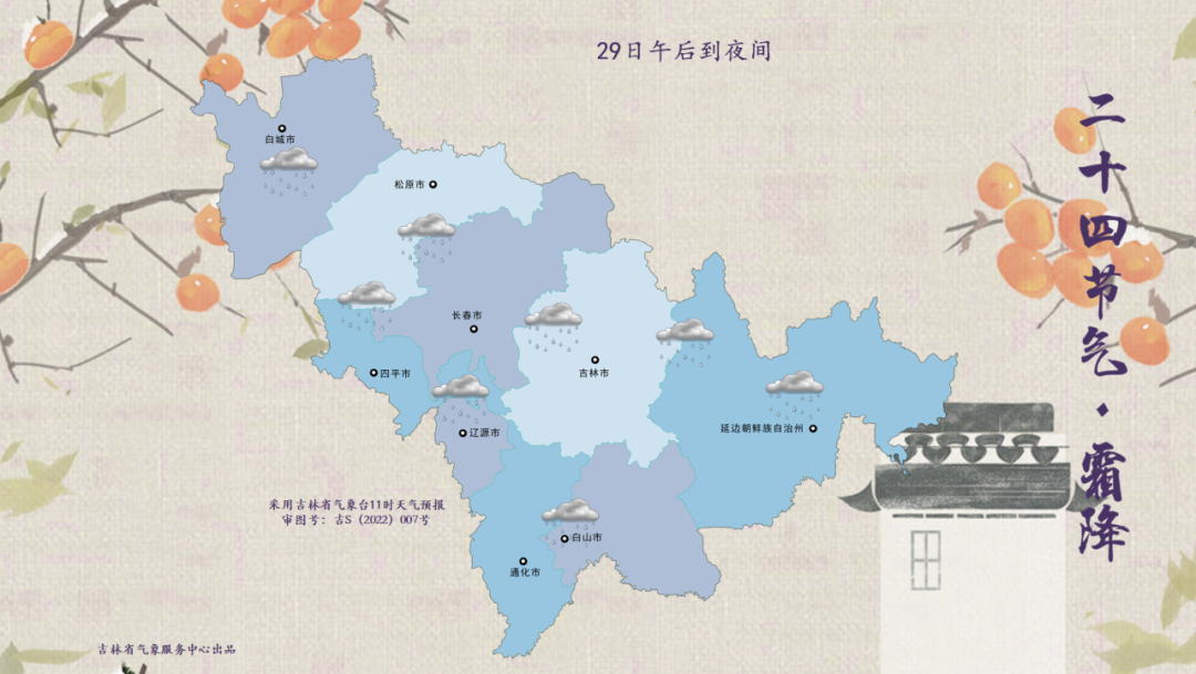 *明天夜間到後天白天,*全省多雲有時晴,白城南部、松原南部和東部、長春北部、吉林北部有小雨。