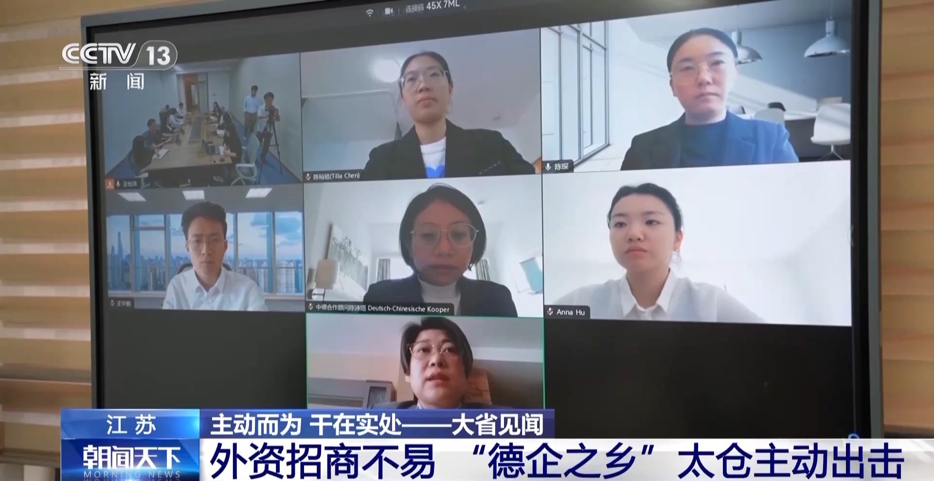 與此同時,一場視頻會正在對德招商事業部的會議室裏進行。視頻另一頭,是正派駐在德國各地的招商團隊。隔着時差,前方招商團隊每天都要向國內同步最新進展。為了實現精準對接,招商團隊還針對德國和太倉的產業特點,細分了工業母機、汽車零部件、裝備製造等多個領域,多點出擊。
