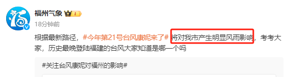 福州氣象提醒,根據最新路徑,颱風“康妮”將對我市產生明顯風雨影響!
