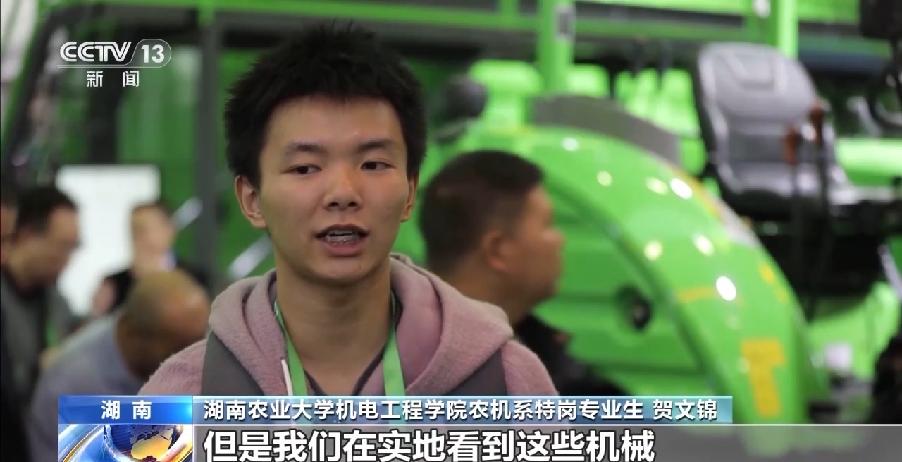 湖南農業大學機電工程學院農機系特崗專業生 賀文錦:我感覺收穫非常大,因為我們在課本上學習的只是它的一些原理和一些部分的工作圖,但是我們在實地看到這些機械,給我一種非常震撼的感覺。