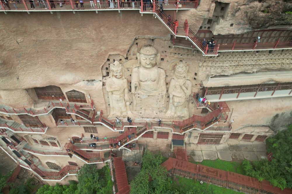 如今,麥積山石窟作為“絲綢之路:長安—天山廊道的路網”的遺產點之一被列入《世界遺產名錄》。各類大型論壇、展覽在此舉辦,越來越多中外遊客、研學團隊登上棧道,在與塑像的“對話”中感受跨越歷史的文化共振。