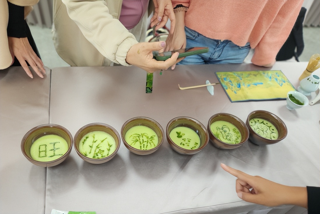 參觀完茶園後,覃玉帶領枱灣青年共同學習點茶。覃玉不僅是國家級技能大師工作室領銜人,還是省級鄉村工匠,接觸茶已經有18年的時間,她從“温盞”“燙筅”開始一步步帶領枱灣青年體驗點茶。現場還進行了茶藝比拼,通過擊拂、作畫等環節,將自己對茶文化的理解和感悟融入藝術創作中。