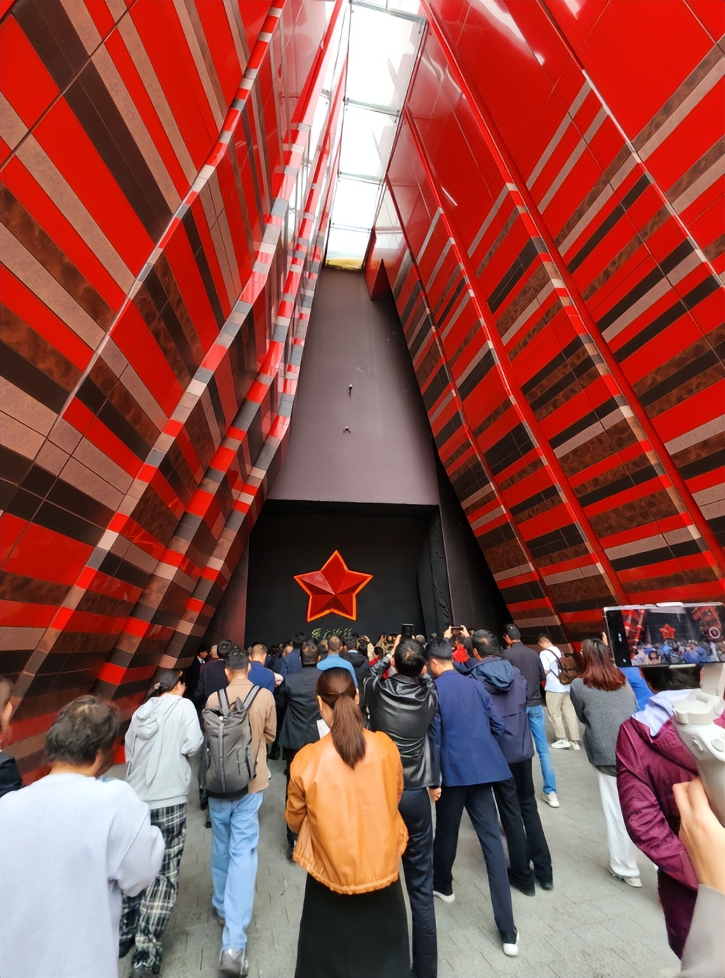 在長達90分鐘的沉浸式觀影體驗中,不少觀眾眼中泛着淚光。當第四篇章緩緩落下帷幕,每位觀眾手中揮舞着五星紅旗,共同唱起了《歌唱祖國》。