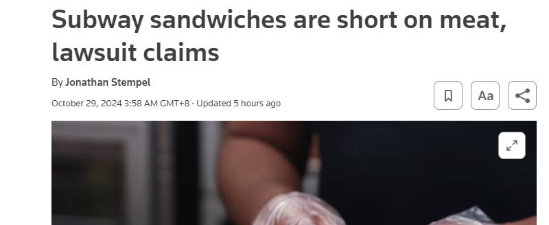 這一指控在當前通貨膨脹和食品價格高企的背景下尤其引人關注。許多低收入消費者正面臨財務困境,而賽百味作為快餐行業的一員,其行為被指對消費者造成了誤導和損害。