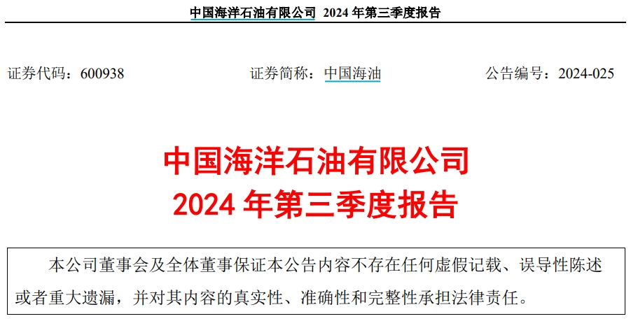中國海油發佈三季度業績,國內、海外淨產量均實現增長