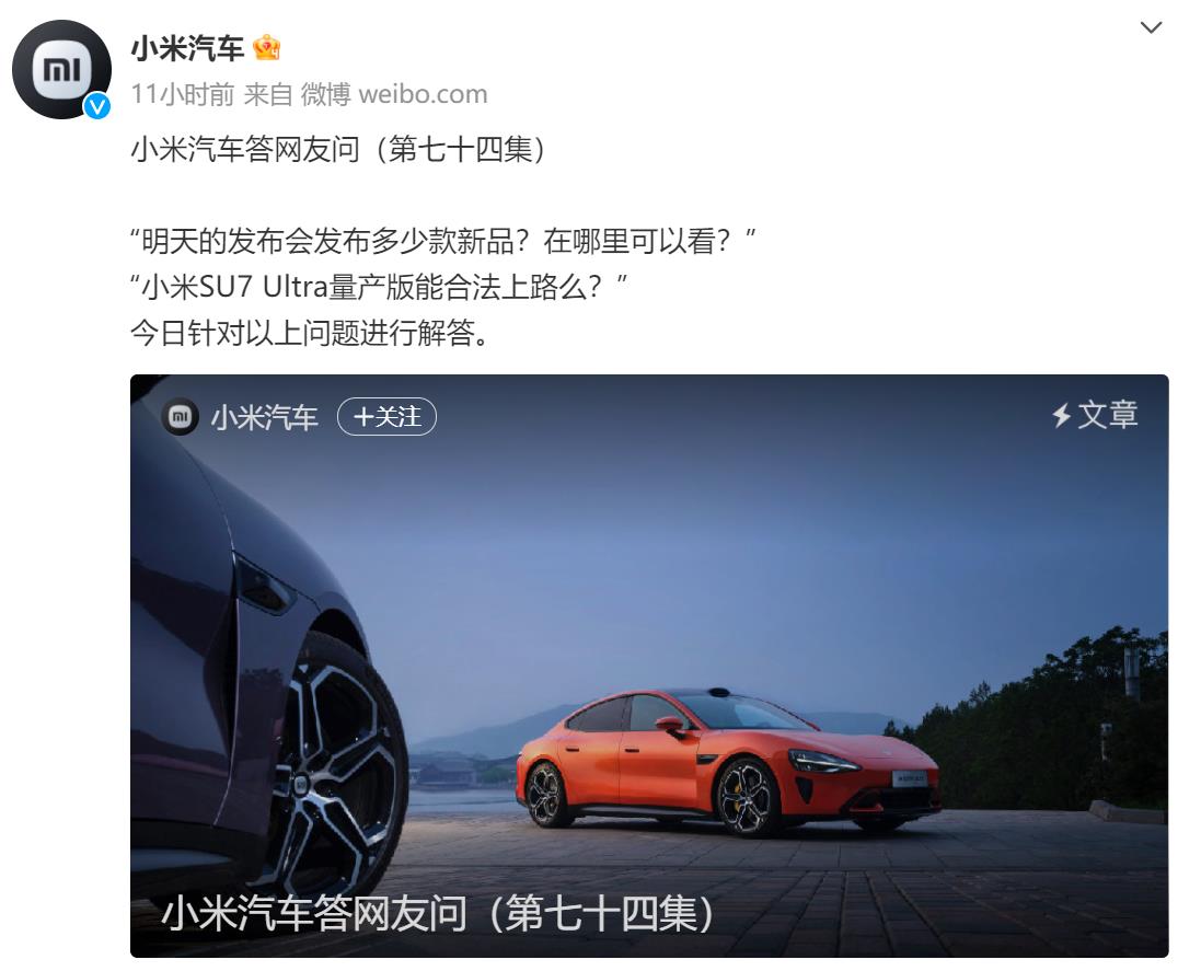 【環球網科技綜合報道】10月29日消息,小米汽車昨日晚發佈答網友問,詳細介紹了即將發佈的SU7 Ultra量產版車型,並解答了關於其定位、賽用碳陶瓷制動盤、絞牙減振器等相關問題。
