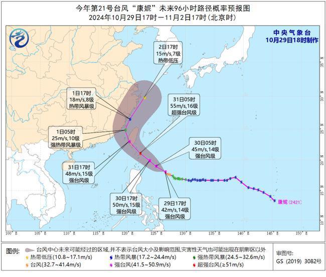 颱風“康妮”將於31日白天在台灣島登陸 之後向浙閩沿海靠近
