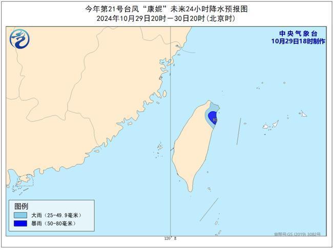 降水預報:29日20時至30日20時,我國台灣島東北部部分地區有大雨或暴雨(50—80毫米)。