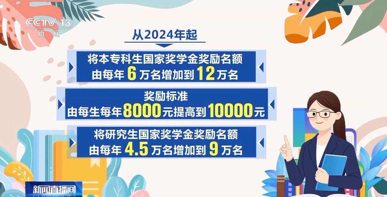 根據通知,增加高等教育階段國家獎學金名額,提高獎助學金標準。從2024年起: