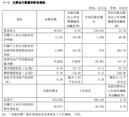 南方航空在第三季度實現營業收入498.71億元,同比增長4.64%,淨利潤為31.93億元,同比下降23.89%。而前三季度累計營業收入達到1346.61億元,同比增長12.70%,淨利潤19.65億元,同比增長48.86%。