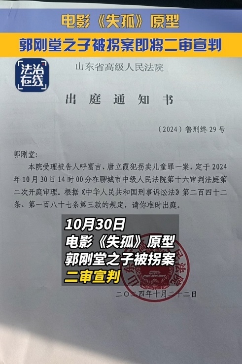 今天(10月30日)14時,備受關注的郭剛堂之子被拐案將在山東省聊城市中級人民法院二審二次開庭。