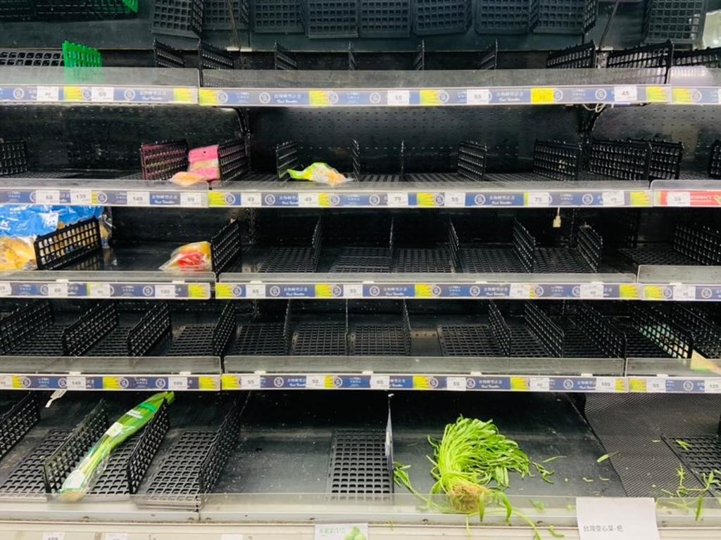 不少島內民眾29日到賣場挑選物資時,發現蔬菜區幾乎被掃光。圖源:中時新聞網