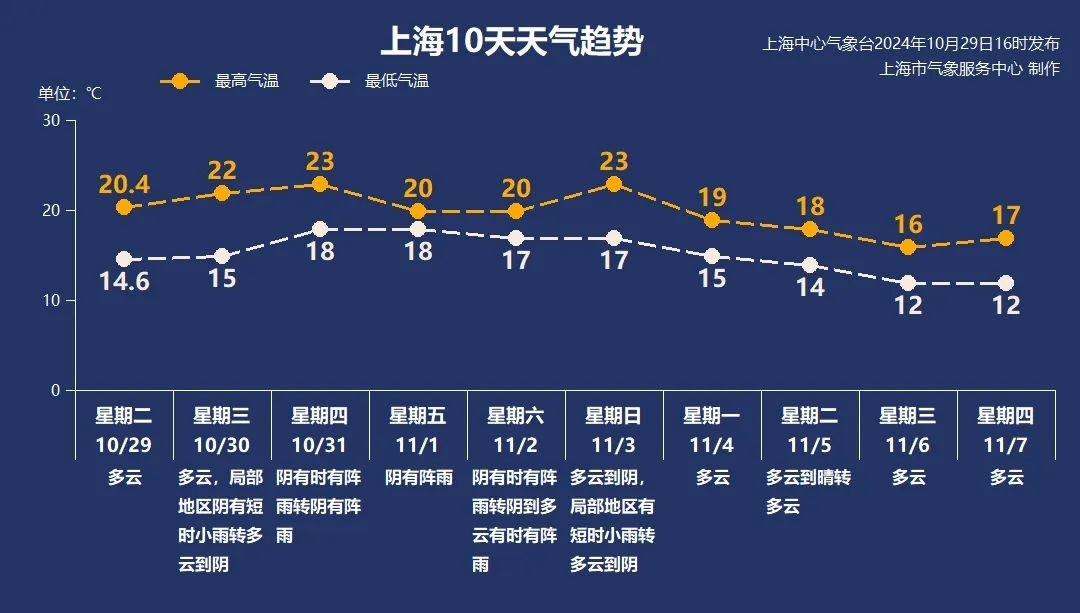 - 10月31日下午起,受“康妮”北側倒槽影響,申城將出現陣雨天氣,傍晚到夜間雨勢逐漸明顯,局部地區可能有大雨到暴雨**;**