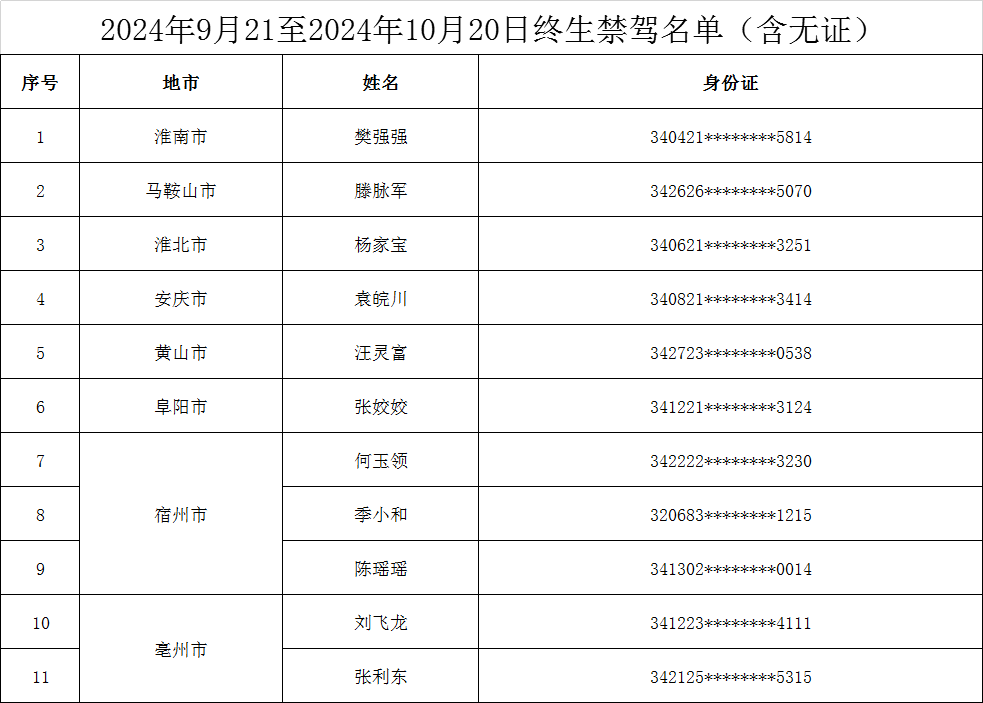 安徽這11人終生禁駕!