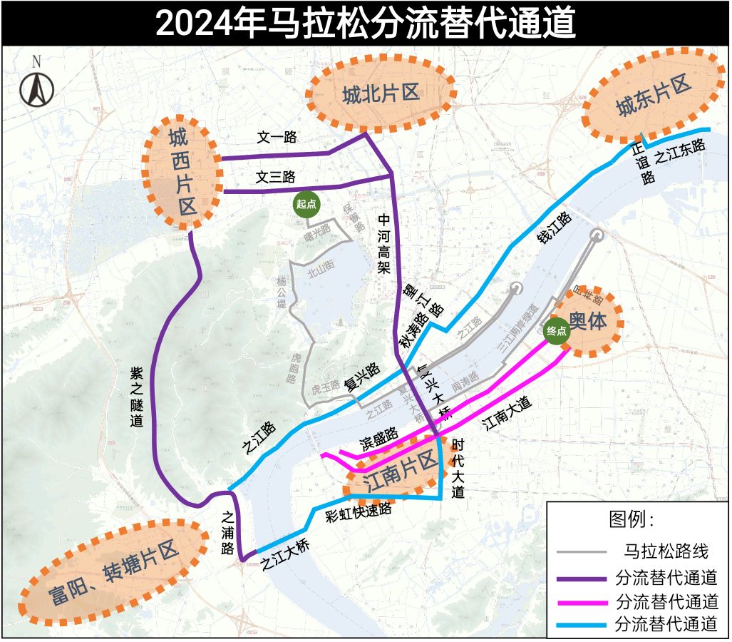 (4)7時起,賽道虎跑路、虎玉路、南復路、之江路、新業路、飛雲江路、錢江路、復興大橋二層、時代大道、聞濤路、觀瀾路等採取分時、分段臨時交通管控。