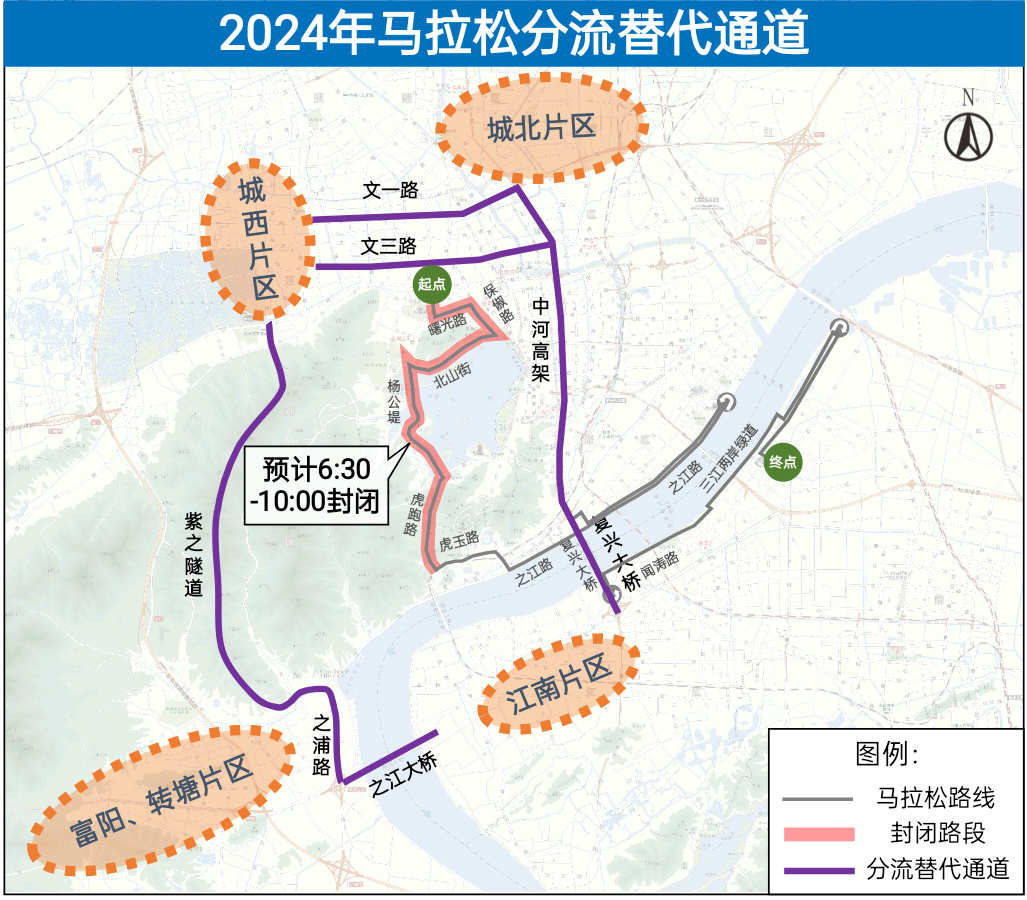 (2)6時40分起,賽道北山街(保俶路至曙光路段)實施交通管控。