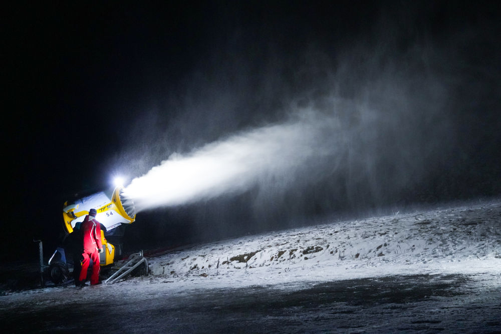 在雪炮轟鳴聲中,位於吉林市冰雪經濟高質量發展試驗區內的北大湖滑雪度假區首先開啓了造雪模式。今年,這裏新增了100台造雪機,開放雪道條數從64條增至74條,雪道面積從239公頃增至275公頃,酒店總牀位數增至9000張。