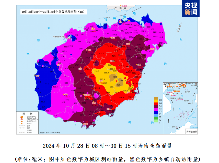 瓊海、瓊中和萬寧3個市縣共4個鄉鎮雨量超過900毫米,